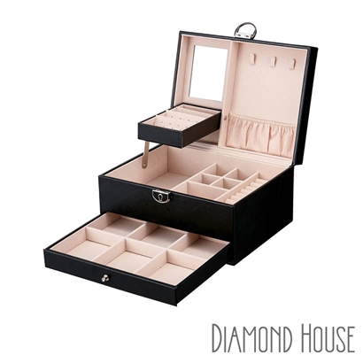 納帕刺繡紋造型大容量單抽珠寶收納盒 黑/白 |