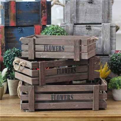 美式鄉村杉木實木手工做舊復古置物箱三件組 |