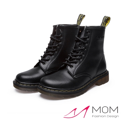 歐美經典款8孔綁帶真皮馬丁靴 短靴 工程靴 黑 |
