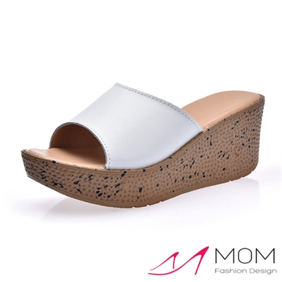 繽紛糖果色基本款坡跟真牛皮高跟拖鞋 白 |