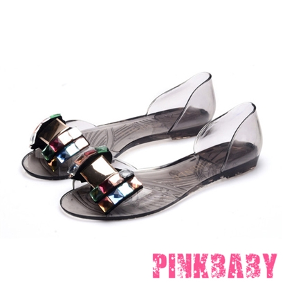 方晶蝴蝶結淺口透明水晶防水果凍涼鞋 |