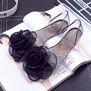 蕾絲玫瑰花朵魚嘴防水透明果凍涼鞋 |