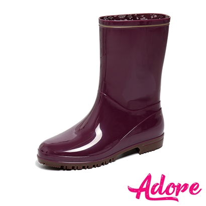 亮面描邊時尚純色中筒雨靴 紫 |