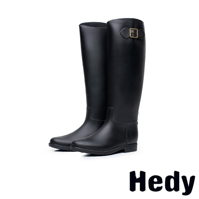 VIVI雜誌款金屬釦飾修身防水高筒雨靴 黑 |