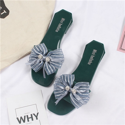 美鑽紗花方頭低跟果凍拖鞋 3色任選 |