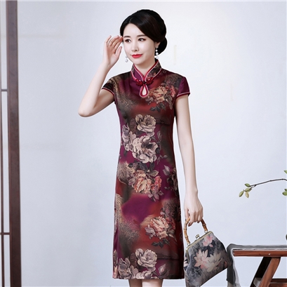 雅致古典配色滾邊香雲紗優雅短袖時尚旗袍 (4款可選) |
