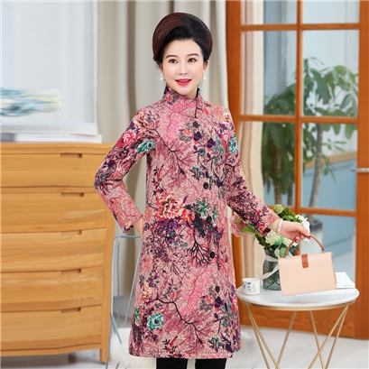 ■ 立領修飾身形 ■ 美型花彩衣面 |