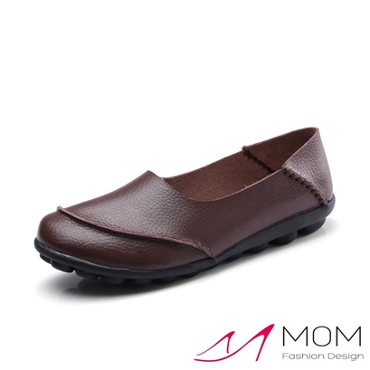 真皮小圓頭拼接兩穿法軟底豆豆鞋 咖 |