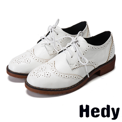百搭英倫風布洛克雕花個性粗跟牛津鞋 米 |