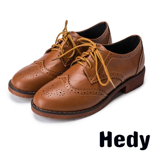 百搭英倫風布洛克雕花個性粗跟牛津鞋 棕 |