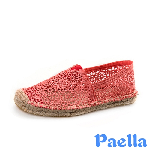 時尚經典縷空蕾絲草編休閒鞋 西瓜紅 |