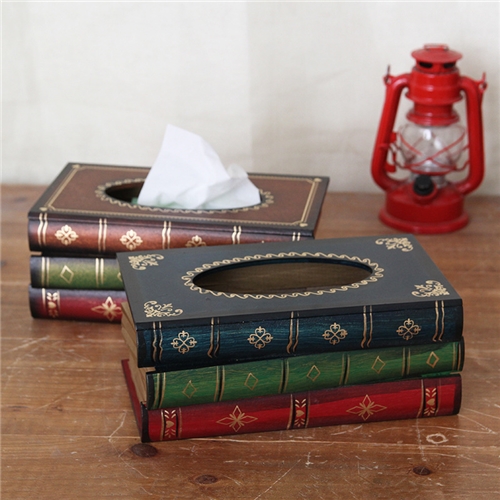 歐式古典宮廷風書本造型木質紙巾面紙盒 藍/綠/棕 |