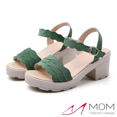 甜美花邊翻絨皮革百搭粗跟涼鞋 綠 |