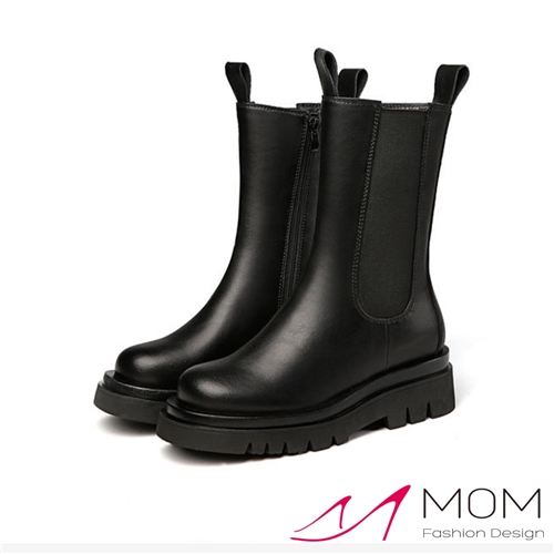 真皮保暖機能輕量大底英倫風切爾西短靴/中筒靴 黑 2款任選 |
