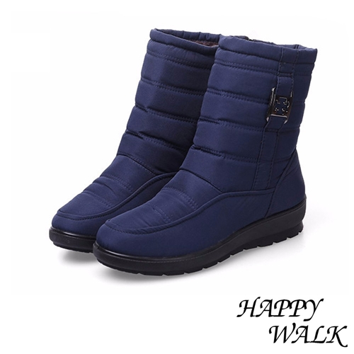 輕量時尚釦飾雙層防水防滑加厚保暖雪靴 藏青 |