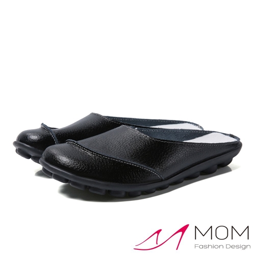 真皮小圓頭立體車線造型包頭舒適軟底豆豆拖鞋 黑 |