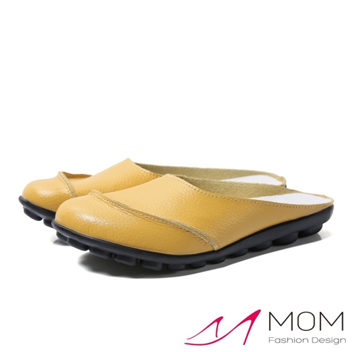 真皮小圓頭立體車線造型包頭舒適軟底豆豆拖鞋 黃 |