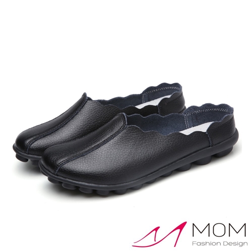真皮小圓頭時尚花邊鞋口包頭舒適軟底豆豆拖鞋 黑 |