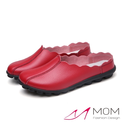 真皮小圓頭時尚花邊鞋口包頭舒適軟底豆豆拖鞋 紅 |
