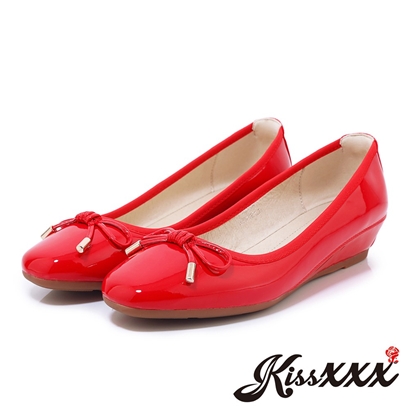 內真皮經典蝴蝶結造型舒適平底坡跟鞋 紅 |