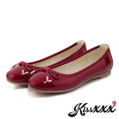 內真皮馬卡龍色系漆皮圓頭小蝴蝶結娃娃鞋 酒紅 |