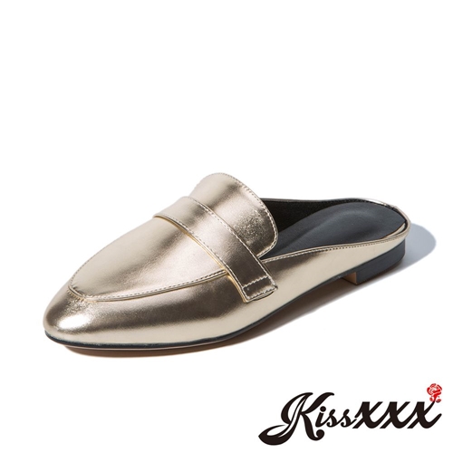 金屬質感亮皮時尚包頭低跟穆勒鞋 金 |