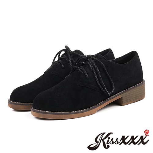 百搭復古縫線磨砂絨面蠟繩綁帶造型牛津鞋 黑 |