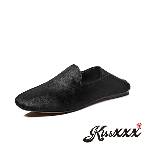 真皮馬毛小方頭經典版型低跟樂福鞋 黑 |