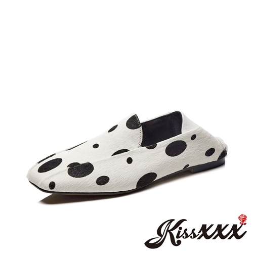 真皮馬毛小方頭經典版型低跟樂福鞋 斑點 |