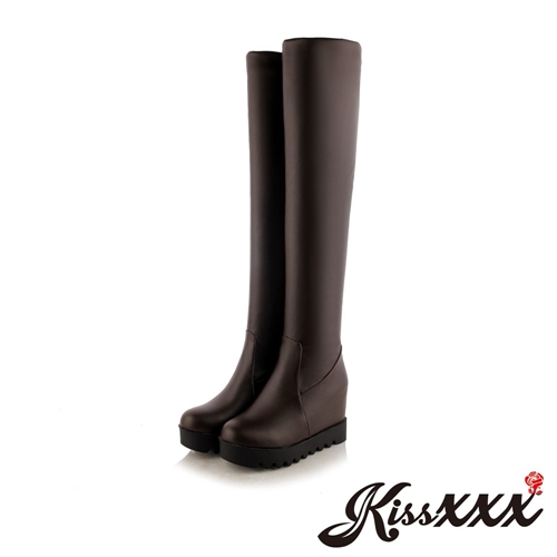 帥氣亮漆皮質感內增高厚底過膝長靴 棕 |
