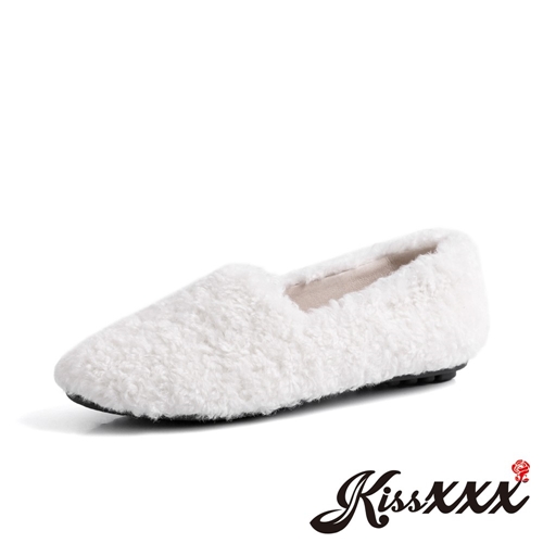 可愛捲捲羊駝毛內真皮圓頭豆豆休閒鞋 白 |