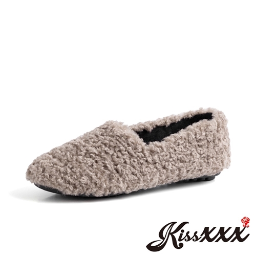 可愛捲捲羊駝毛內真皮圓頭豆豆休閒鞋 卡其 |