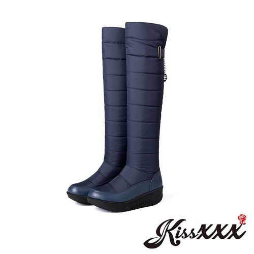 保暖羽絨防輕潑水時尚厚底過膝雪靴 藍 |