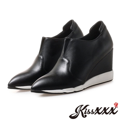 美腳效果尖頭挖V深口坡跟單鞋 黑 |
