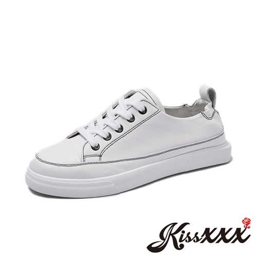 真皮頭層牛皮撞色車線超軟舒適平底休閒鞋 米 |