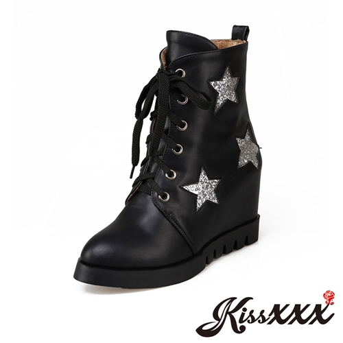 縷空金蔥星星造型內增高平底個性馬丁靴 黑 |