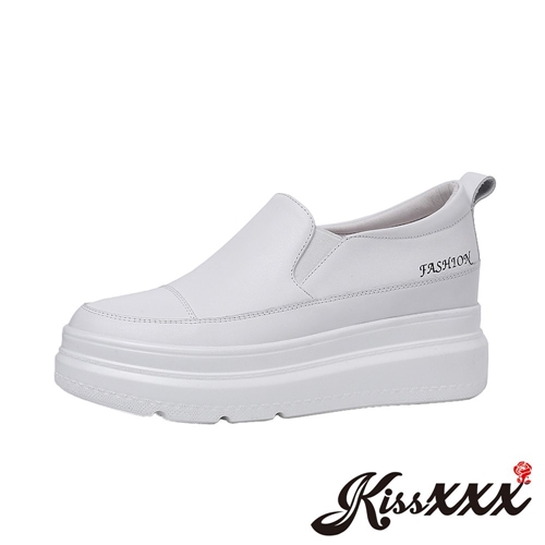 全真皮頭層牛皮鬆糕厚底內增高舒適樂福鞋 白 |