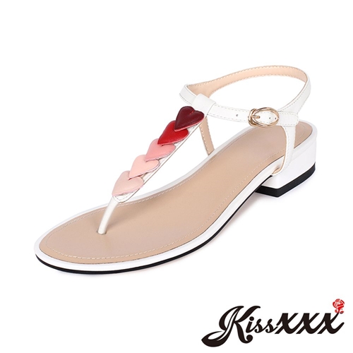 可愛立體粉色系小愛心造型T字粗跟夾腳涼鞋 米 |