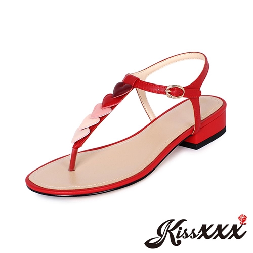 可愛立體粉色系小愛心造型T字粗跟夾腳涼鞋 紅 |