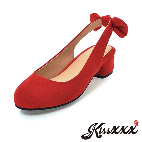 甜美小圓頭蝴蝶結飾包頭粗跟涼鞋 紅 |