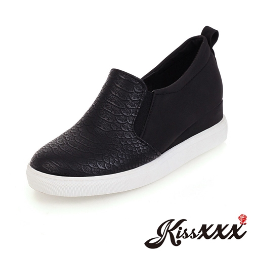 時尚鱷魚皮紋拼接小圓頭坡跟平底樂福鞋 黑 |