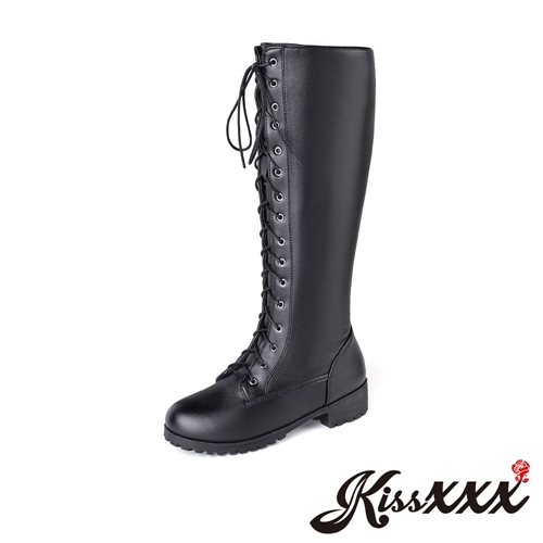 時尚復古經典帥氣百搭綁帶個性騎士靴 黑 |