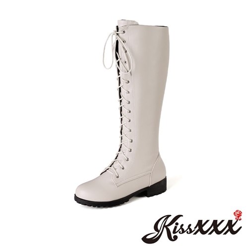 時尚復古經典帥氣百搭綁帶個性騎士靴 米 |