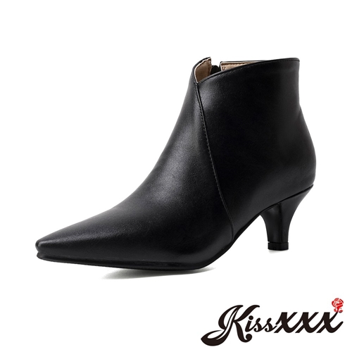 純色交叉尖頭V口百搭低跟踝靴 黑 |