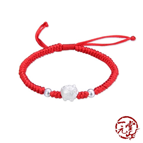 990足銀系列3D硬銀招財進寶小豬造型編織繩飾手鍊*一元堂* |
