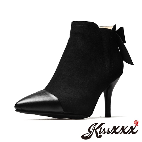 美腿效果尖頭大蝴蝶結造型高跟切爾西短靴 黑 |
