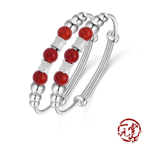 990足銀系列仿紅瑪瑙串珠雙手鐲彌月禮 嬰兒寶寶手鐲 ±19.6g*一元堂* |