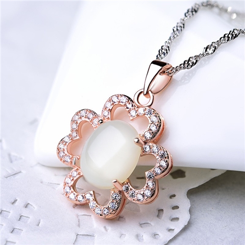 純銀925微鑲美鑽和田玉寶石四葉草造型吊墜 *石拓璞玉* |