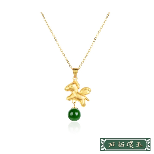 純銀925古法金可愛小馬碧玉珠造型項鍊 *石拓璞玉* |
