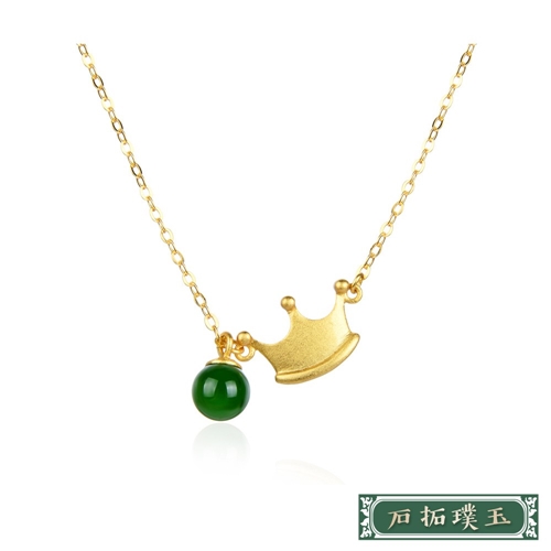 純銀925古法金時尚皇冠碧玉珠造型項鍊 *石拓璞玉* |